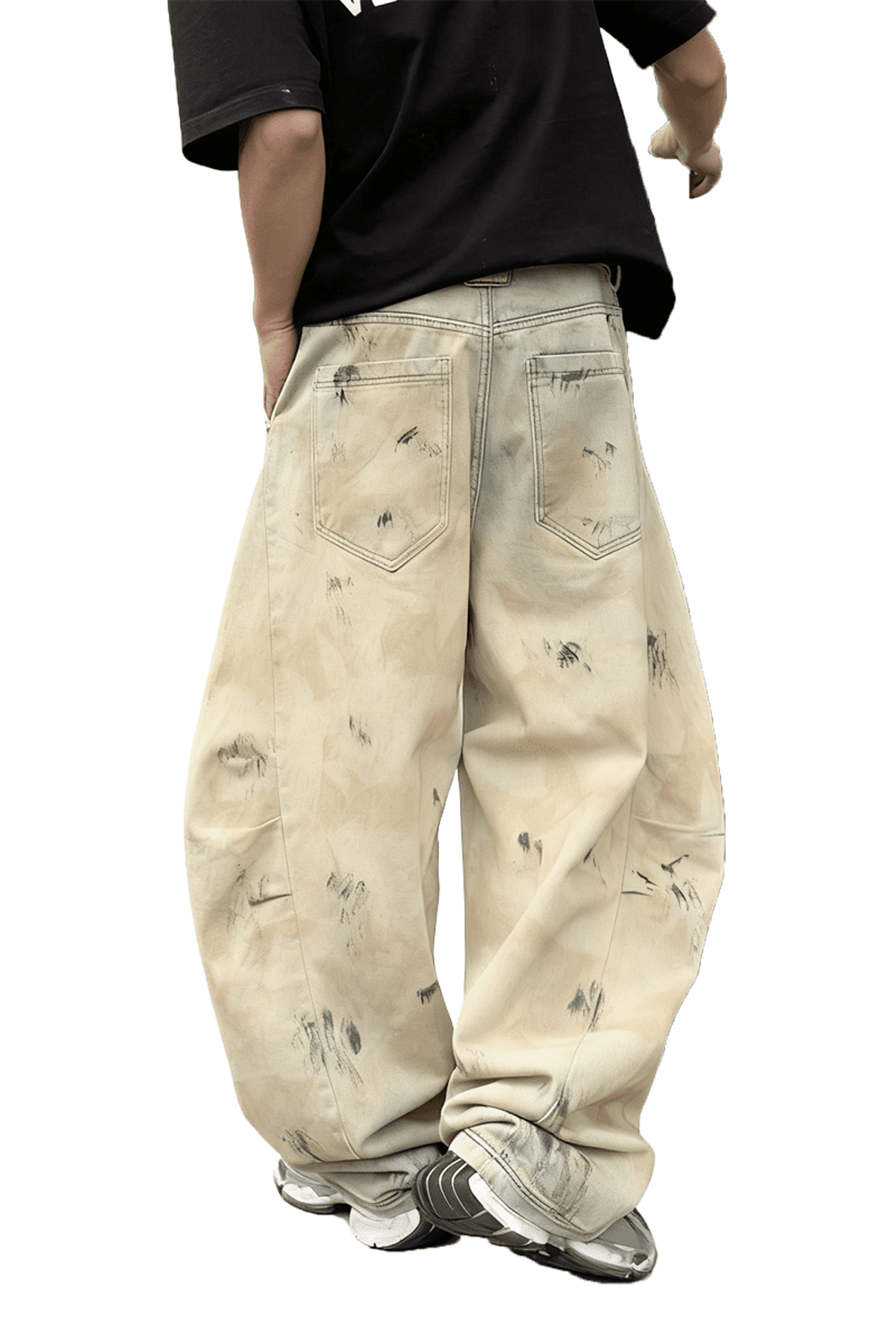 Unisex Elaborately Designed Wide-leg Curved Blade Jeans Ochre S